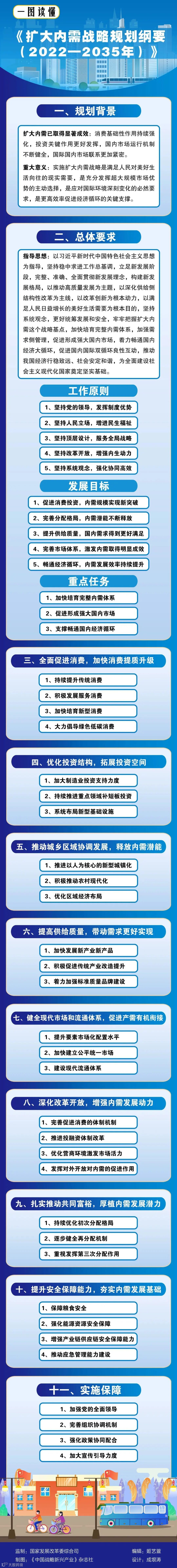 近日,中共中央、国务院印发了《扩大内需战略规划纲要(2022-2035年)》,并发出通知,要求各地区各部门结合实际认真贯彻落实。