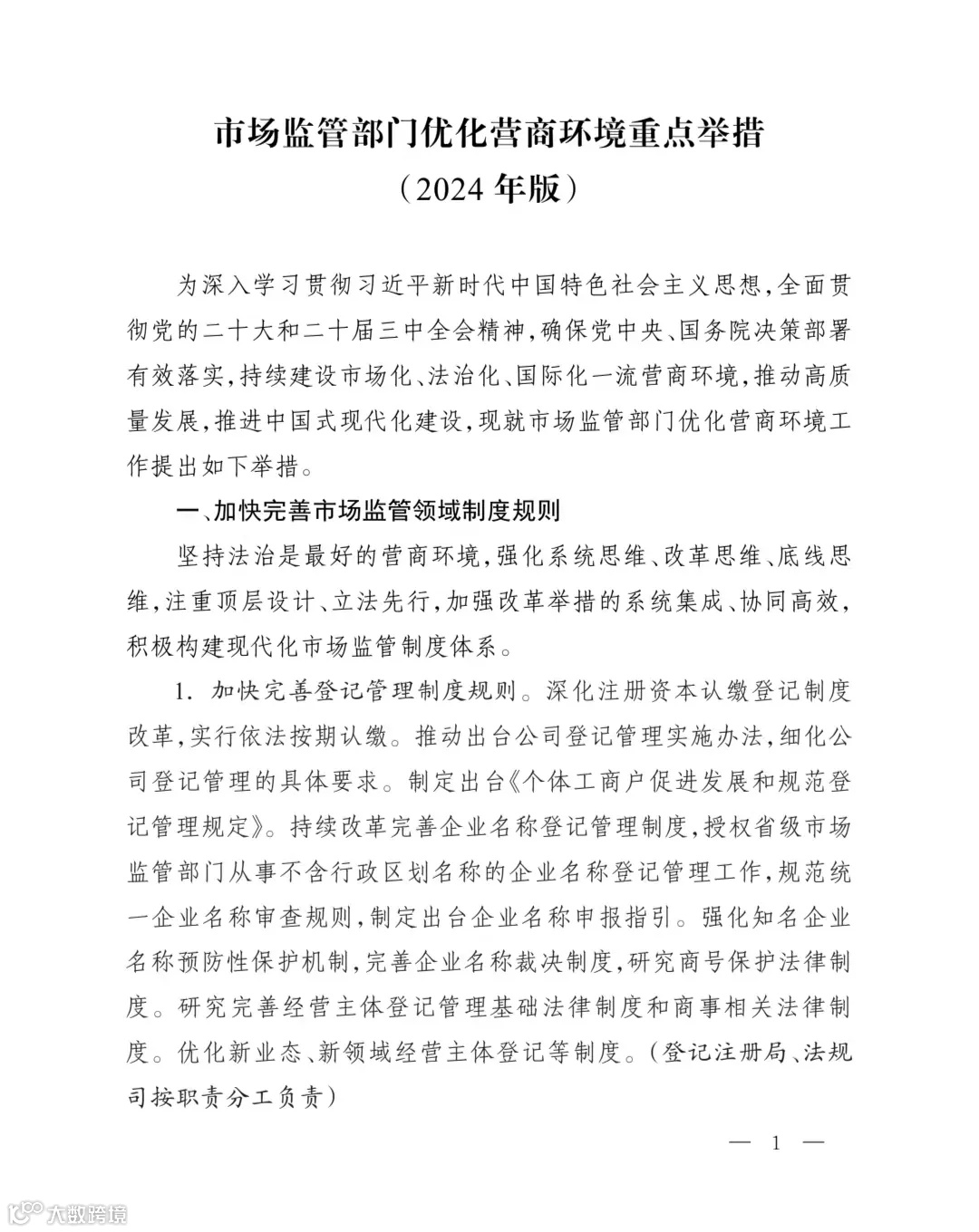 为深入贯彻党的二十大和二十届三中全会精神,全面落实党中央、国务院关于优化营商环境的最新决策部署,9月3日,市场监管总局出台了《市场监管部门优化营商环境重点举措(2024年版)》(以下简称《重点举措》)。