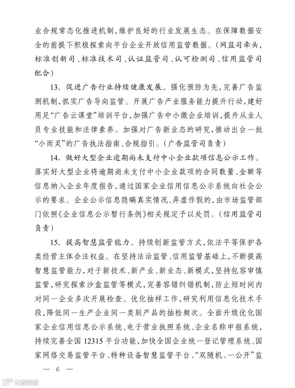●落实好大型企业将逾期尚未支付中小企业款项的合同数量、金额等信息纳入企业年度报告,通过国家企业信用信息公示系统向社会公示的要求。
