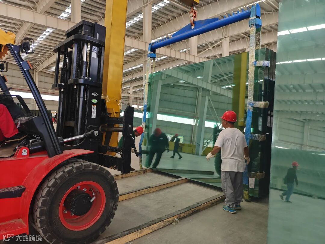 海生玻璃公司的工人们正在装载玻璃