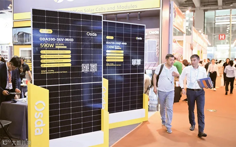电动汽车、锂电池和光伏产品被称为我国外贸“新三样”。在第135届广交会上,“新三样”相关展区“光电锂”交易持续火爆。图为2024年4月15日,境外采购商在广交会上参观太阳能电池展台。 新华社记者 邓华/摄