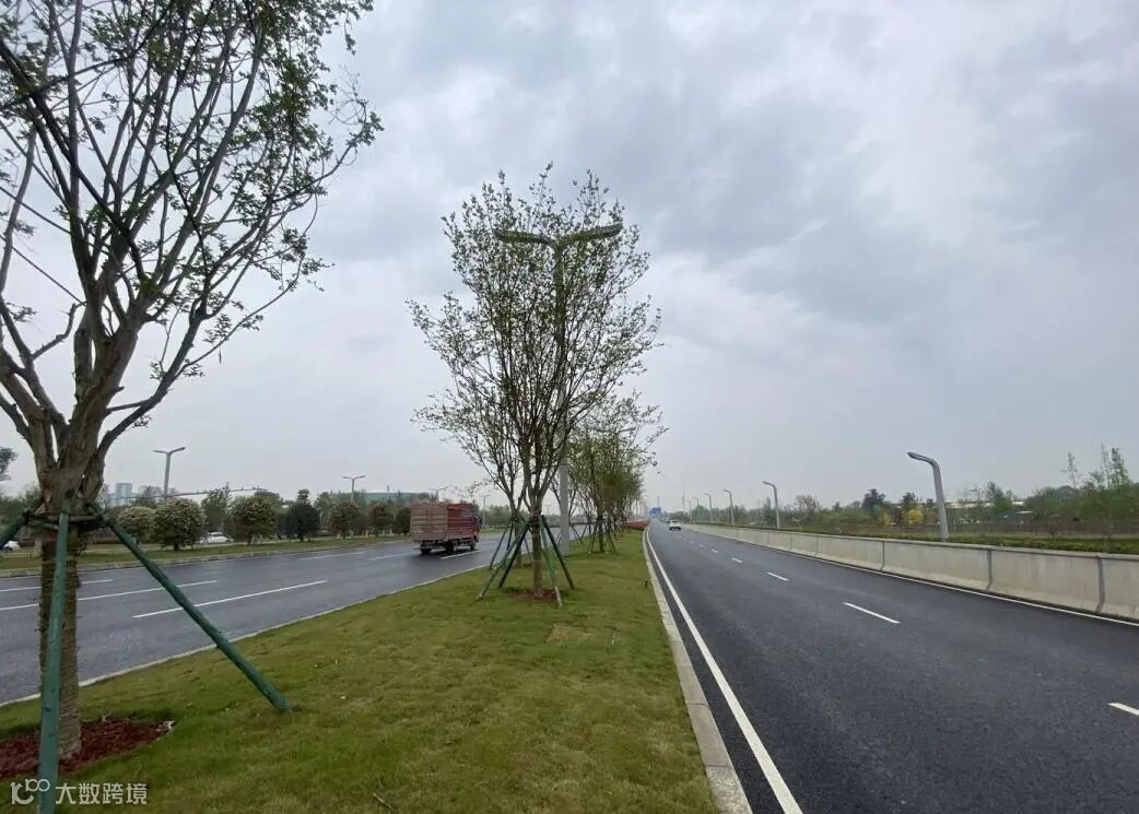 同时,项目充分结合周边生态绿带的特点,高标准规划设计该道路工程,打造道路与沿线城市、农业、大地景观相互融合。开车行驶在东西城市轴线,一侧能看到风景宜人的东安湖体育公园,另一侧能看到一派田园风光的景观农业。