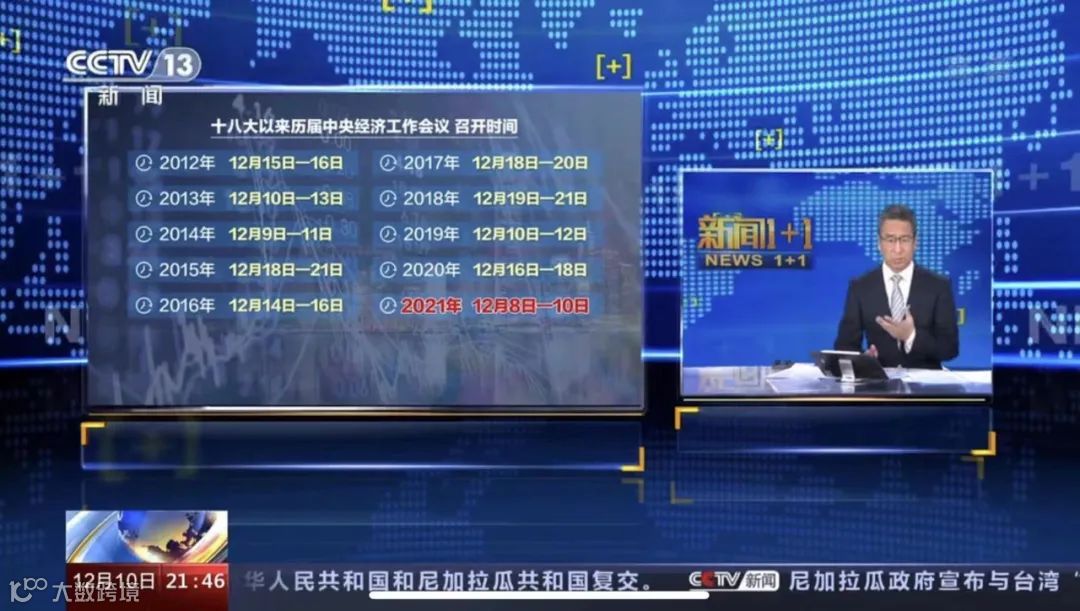 此前央视新闻引述专家观点指出,今年是“十四五”开局之年,明年要迎接党的二十大胜利召开,这段时间经济工作能够健康稳定发展非常重要。因此今年中央经济工作会议时间有所提前,也是可以理解的。