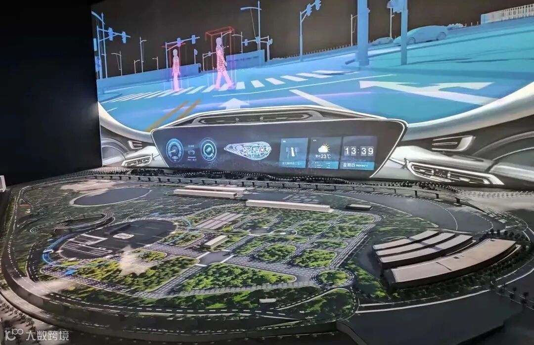 中德智能网联汽车试验基地沙盘鸟瞰。基地是落实中德两国在智能网联汽车领域加强政府、行业、企业多层次合作交流的国内首个落地项目,具有建设起点高、支撑力度大等独特优势;也是工信部批复的第8个国家级智能网联汽车测试示范基地,目前已经基本建成,即将于近期投用。