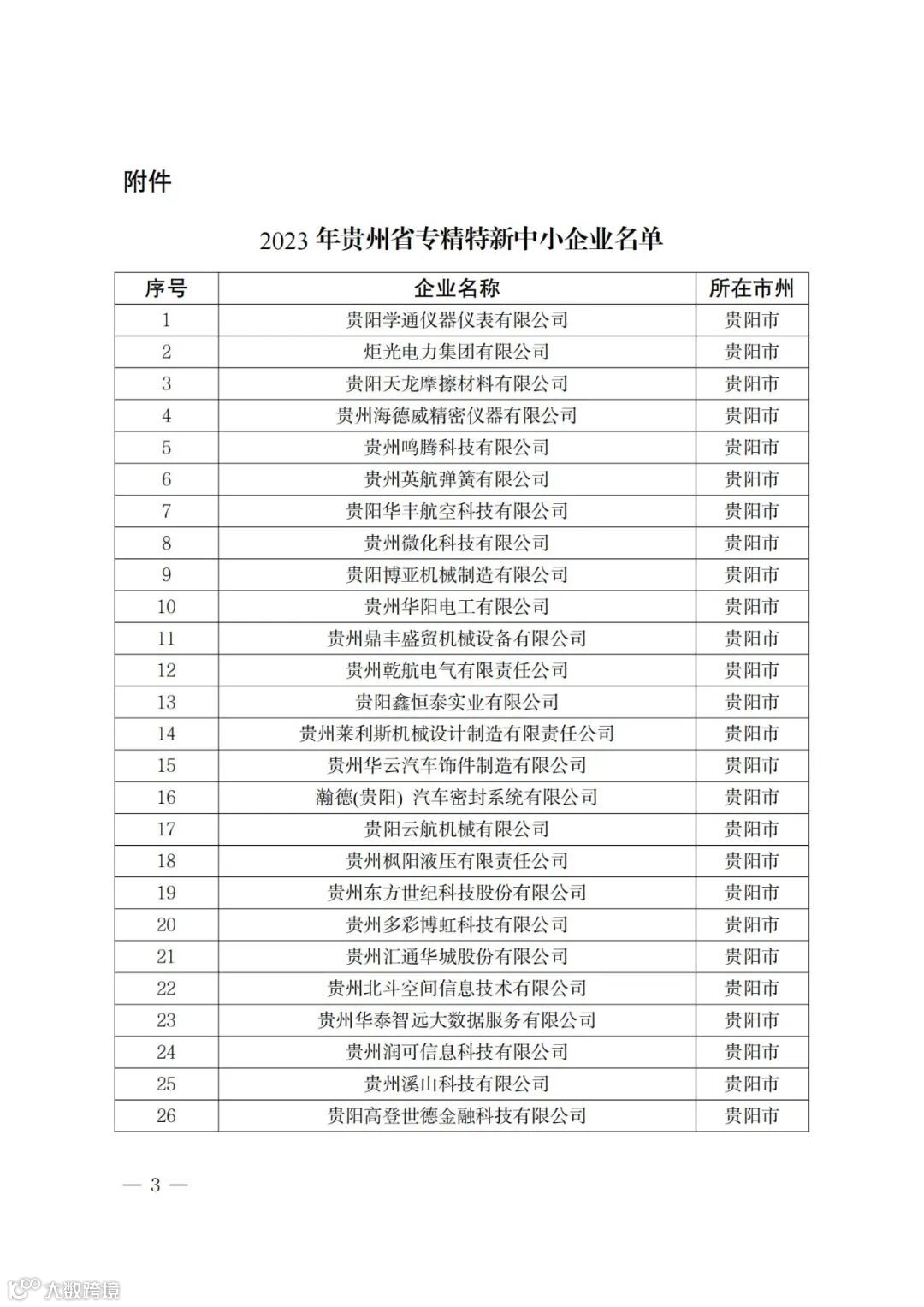 一、确认贵阳学通仪器仪表有限公司、炬光电力集团有限公司等252家创新型中小企业为2023年贵州省专精特新中小企业(名单见附件),自公布之日起,有效期三年。