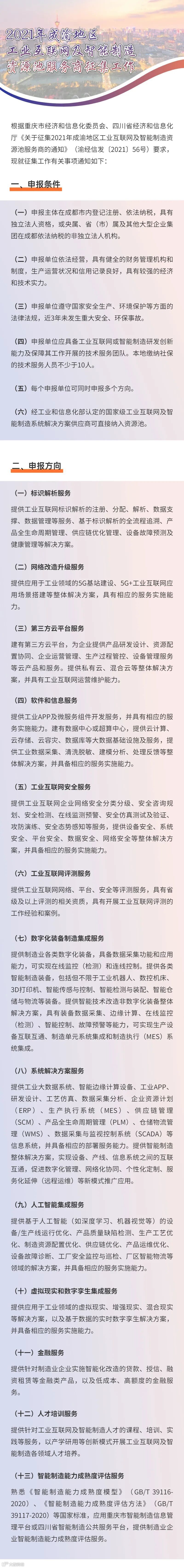 2021年成渝地区工业互联网及智能制造资源池服务商征集工作启动