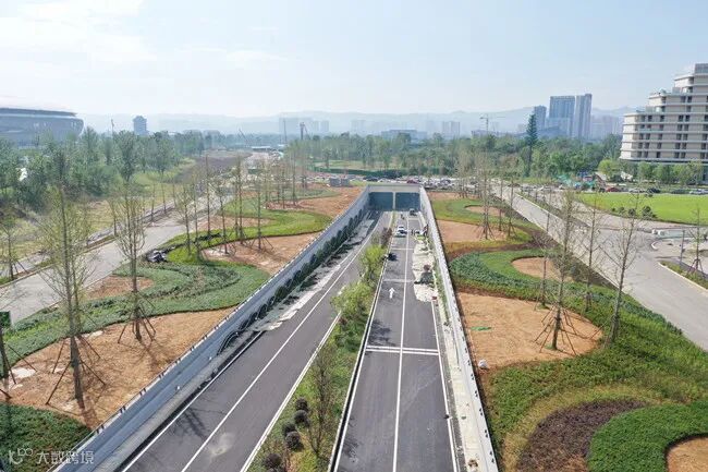 东安湖隧道起点接东安大道、终点接桃都大道,隧道从CAZ片区直穿湖底,再从“一场三馆”附近跃出水面,最大限度保证了东安湖的完整性,又确保了交通通行。
