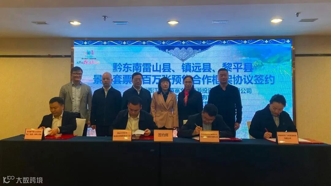 西江千户苗寨文化旅游投资(集团)有限公司、镇远九州文化旅游投资集团有限公司、黎平肇兴文化旅游开发(集团)有限公司与新桦威研学(广州)旅游投资有限公司签订《黔东南雷山县、镇远县、黎平县景区套票预售合作框架协议》,从江县文体广电旅游局与九州数字科技(佛山市)有限公司签订《黔东南从江新媒体直播电商培训孵化基地直播供应链共享产创园项目框架协议》。牛米哥品牌邀佛山人游黔东南,赠百万桶红豆杉泉。