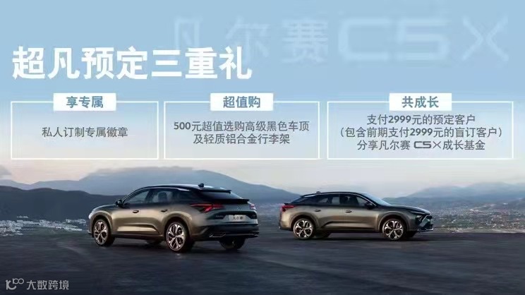 最吸引人的当属“共成长”礼,凡支付2999元的预定客户和前期支付2999元的盲订客户,都将自动成为凡尔赛C5 X成长基金会员。东风雪铁龙在凡尔赛C5 X上市之日起一年内,每卖出一台凡尔赛C5 X,都将与成长基金会员分享5000积分(东风雪铁龙官方小程序)。凡尔赛C5 X销量越高,客户收益越多。