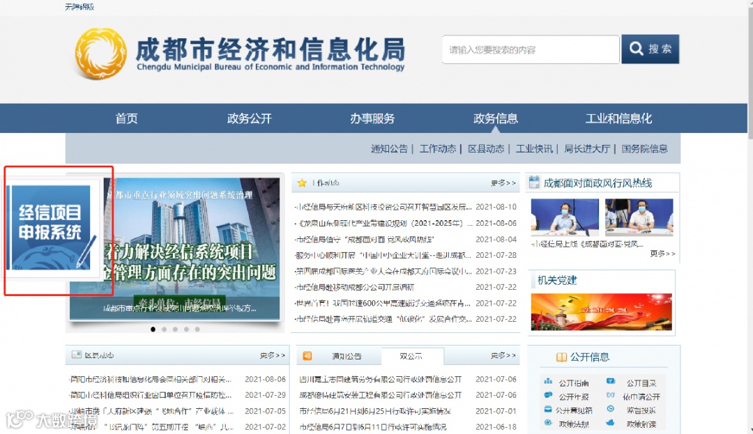 △成都市经济和信息化局官网截图
