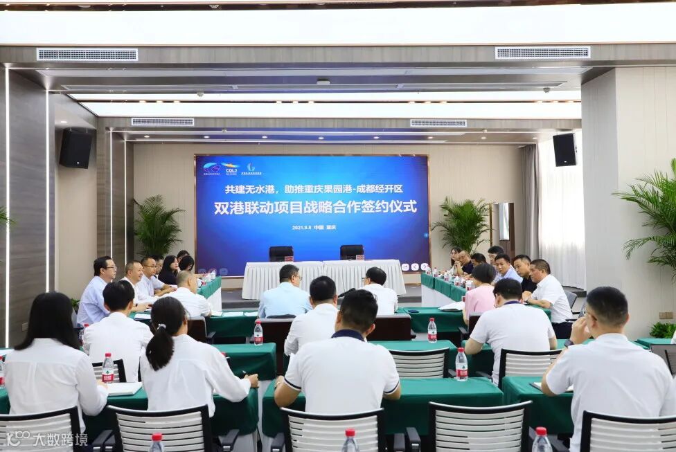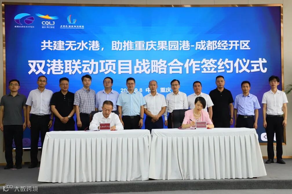为贯彻落实成渝地区双城经济圈建设重大战略部署,全力服务“双循环”新发展格局,加快促进成都经开区与重庆两江新区汽车供应链协同、物流节点互联,探索促进成都经开区(无水港)与重庆港联动发展(以下简称“双港联动”),经两地相关部门和企业的努力,9月8日,集团下属成都经开产投资产运营有限公司与重庆果园港国际物流枢纽建设发展有限公司分别代表两地政府在渝签署“双港联动”项目战略合作协议。