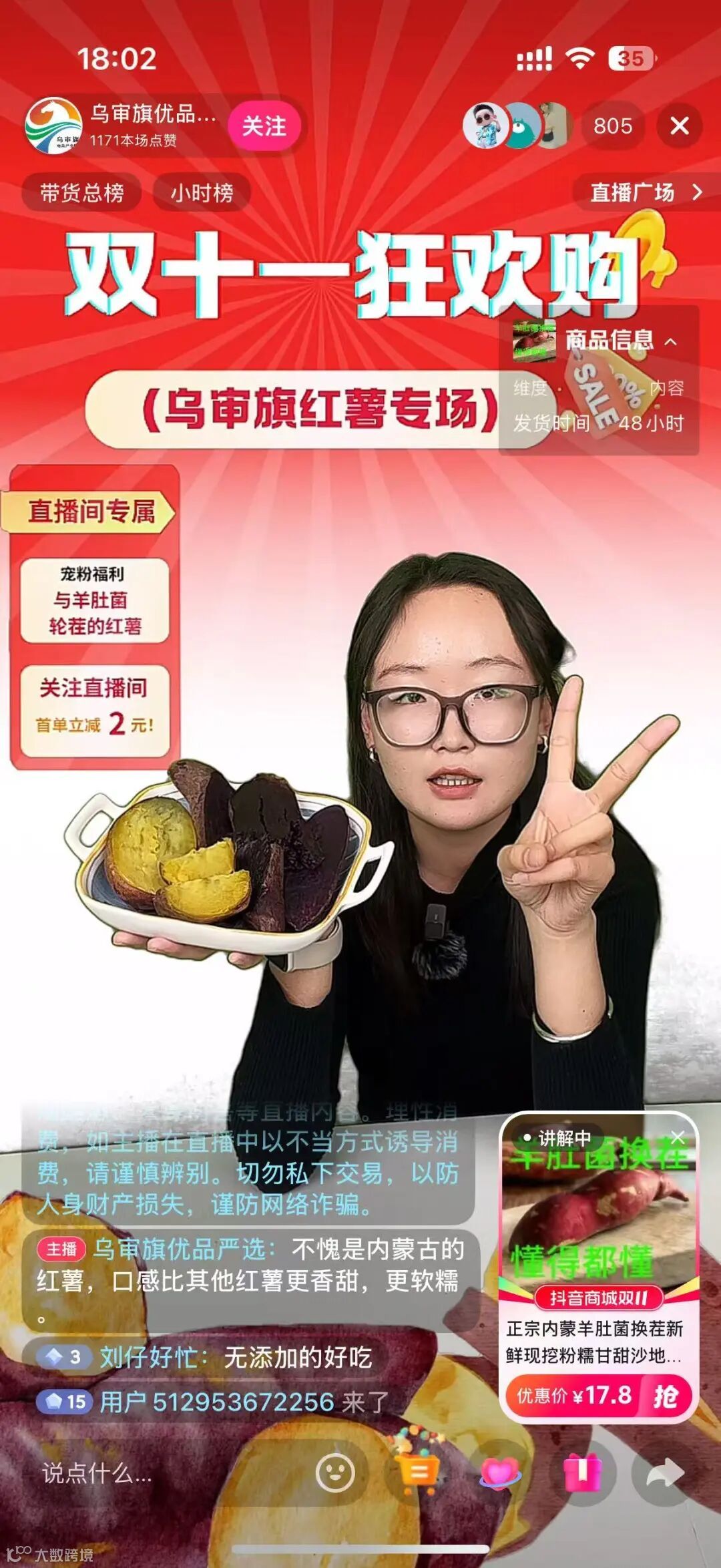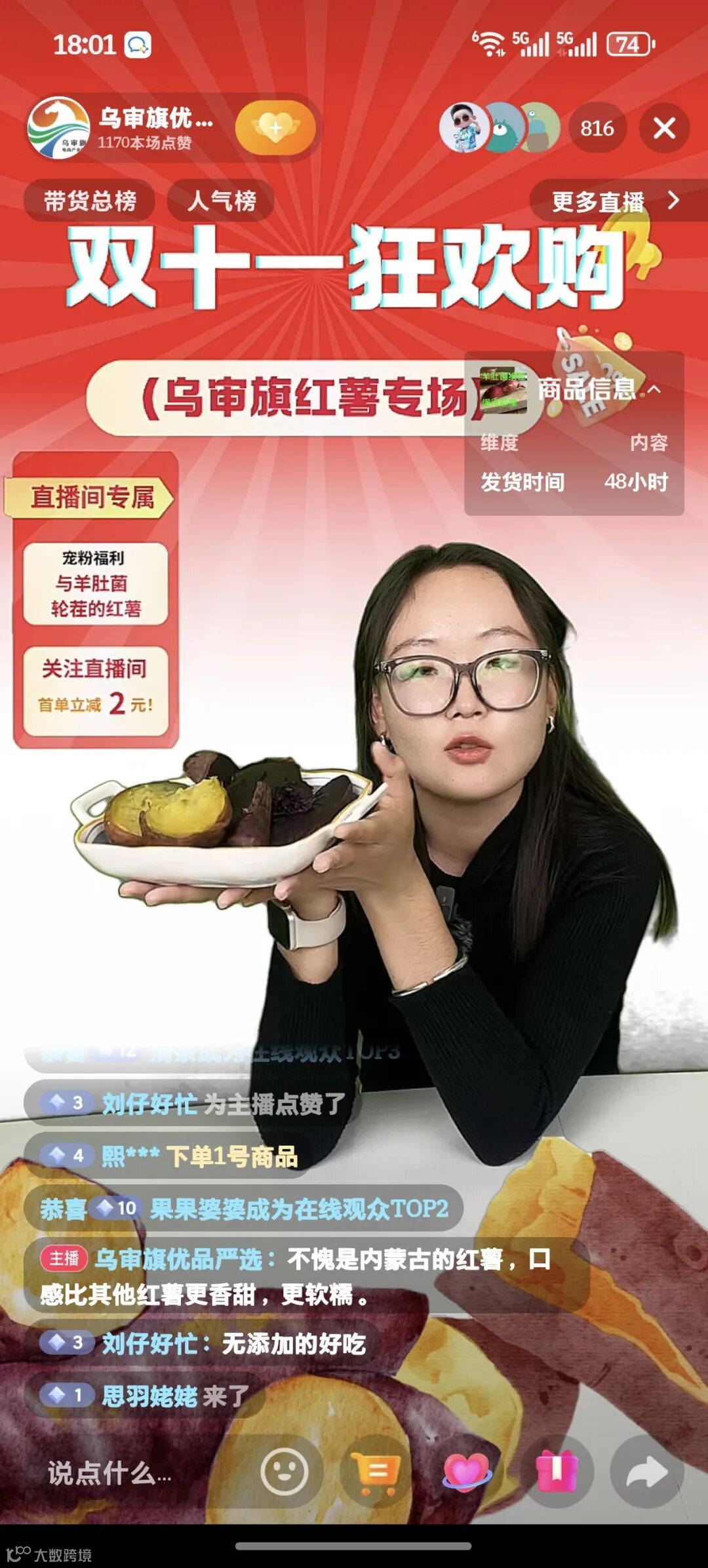 本次双十一直播专场,在线人数最高达843人,累计观看人数5699人次,从筹备时的反复打磨,到直播中的热情互动,再到收官时的硕果累累,这场双十一红薯专场的成功,是团队同心协力的结果,更离不开每一位观众的鼎力支持。直播中,我们收获了订单,更收获了信任与期待——有观众留言“下次直播提前说,一定蹲守”,也有直播爱好者私信咨询“能不能一起合作推广家乡好物”。这些声音,让我们更加坚定了深耕直播赛道的决心。