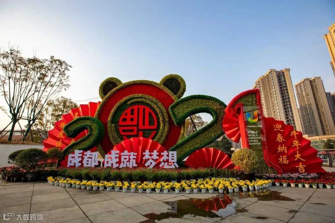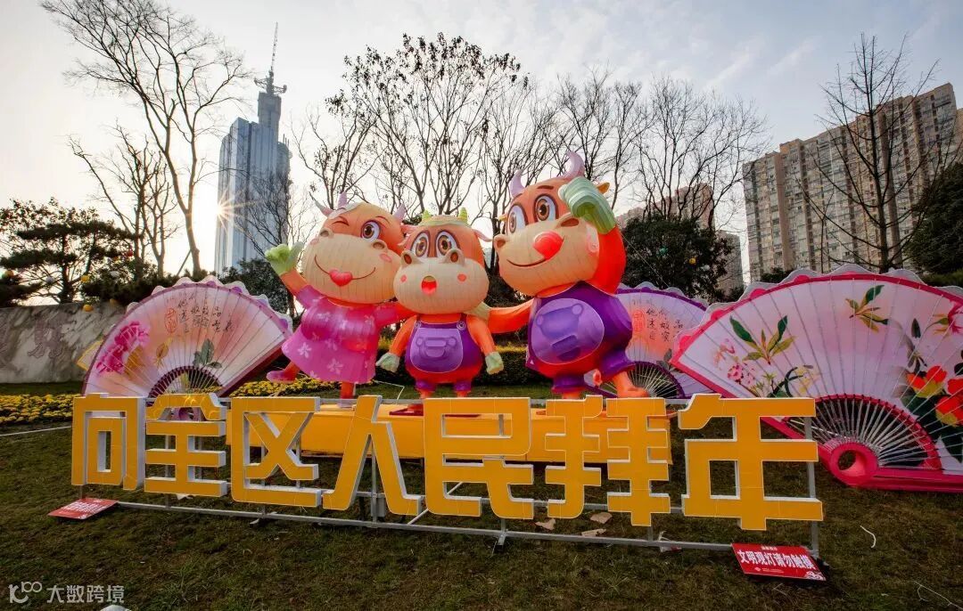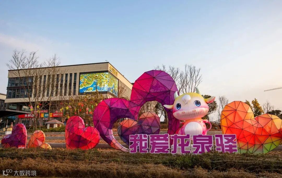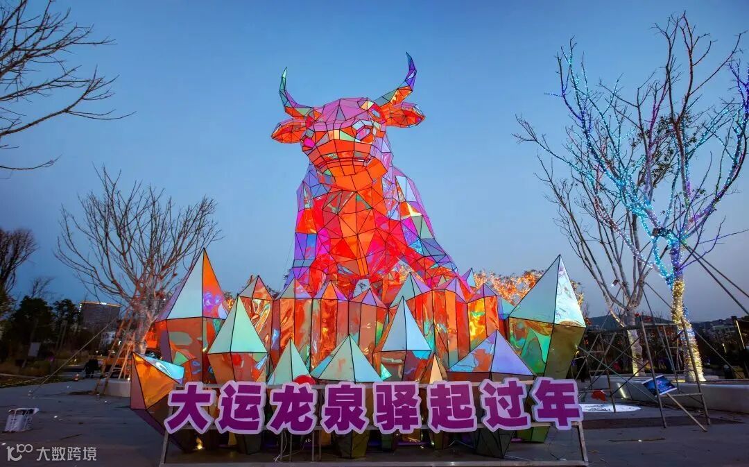 可爱的生肖牛从龙泉驿体育场中一跃而出