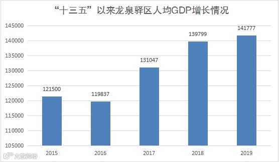 按常住人口计算,2019年全区人均GDP达141776元,远高于同期全市(103386元)和全省(55774元)水平,比2015年(121500元)增长11.0%,2015-2019年人均GDP年均增长2.6%,经济发展水平不断提高。