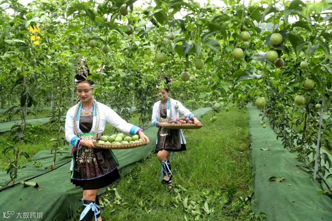 山地之上,多果园。百香果、猕猴桃、火龙果爬满了架子,蓝莓、李子、樱桃压弯了枝条。