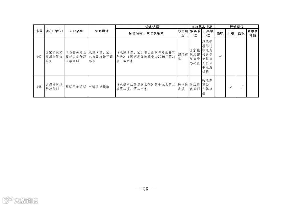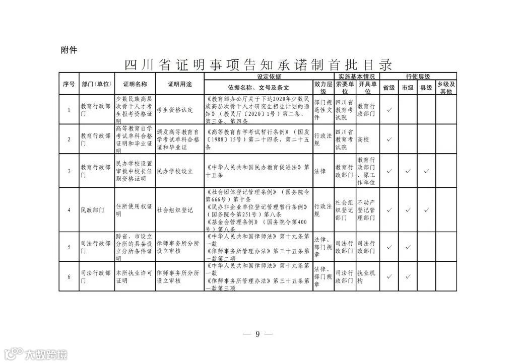 四川省证明事项告知承诺制首批目录