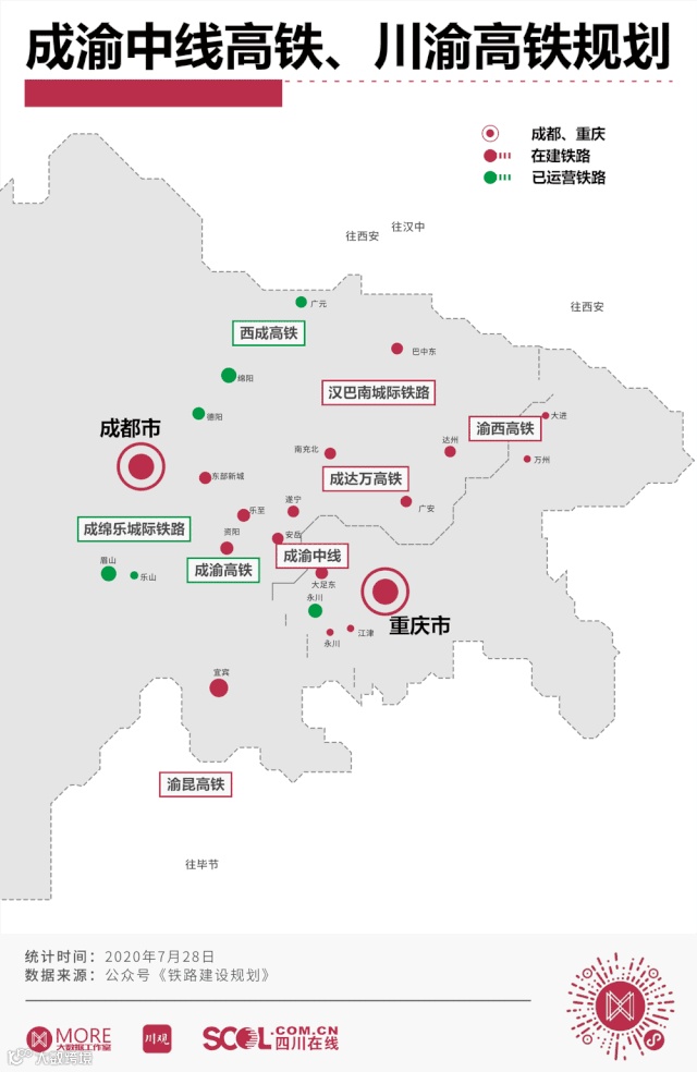 成达万、成渝中线高铁、成自宜渝昆高铁