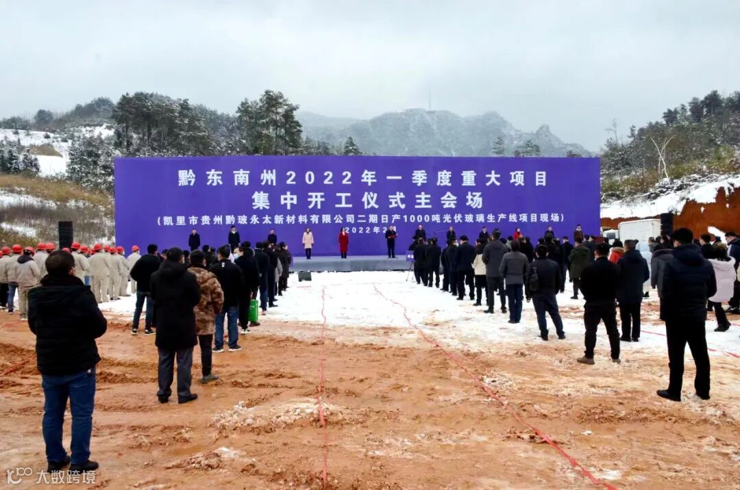 2月24日,黔东南州2022年一季度重大项目集中开工仪式在凯里市贵州黔玻永太新材料有限公司二期日产1000吨光伏玻璃生产线项目现场举行。州委常委、常务副州长周舟讲话并宣布项目开工,副州长陈应武主持开工仪式,副州长王建华、州政府副厅级干部江朝伦出席开工仪式。