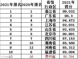 据贵州省工商联研究室主任汤漫介绍,今年8月至10月,全国工商联组织开展了2021年度“万家民营企业评营商环境”调查,由民营企业直接填报问卷,覆盖全国31个省(区、市)各行业的大中小微民营企业,共回收原始样本69120份。根据有效问卷数据和官方统计数据加权计算,最终得出了营商环境总得分。