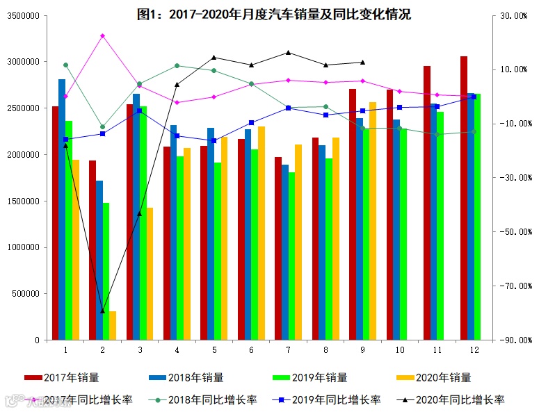 2020年9月,我国汽车工业恢复形势持续向好,当月汽车产销均呈现两位数增长。同时,受国家和地方促消费政策的影响,新能源汽车实现高速增长。