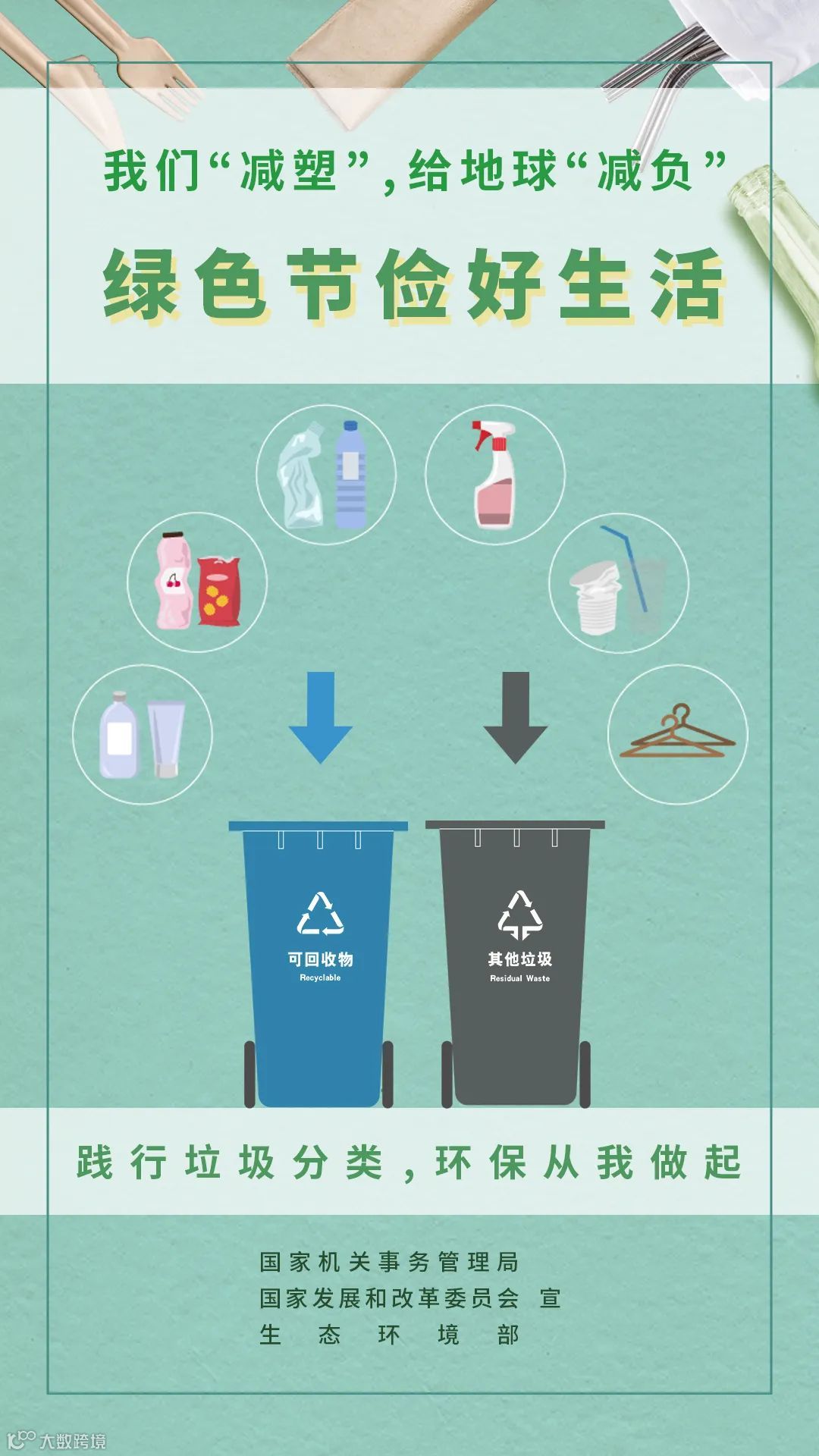 大家行动起来,给地球“减负”、绿色节俭好生活,践行垃圾分类,环保从我做起。放下塑料袋,拿起环保袋,告别白色污染,让我们践行绿色生活方式,一起行动起来吧。