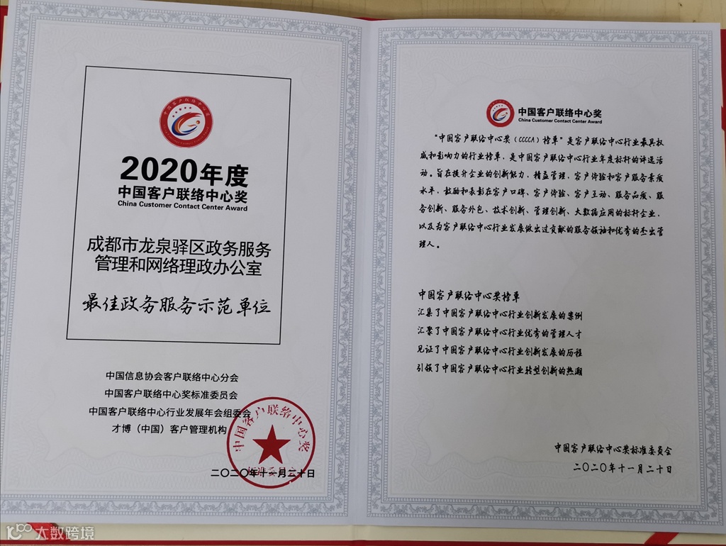 在“2020年度最佳政务服务示范单位”奖项中