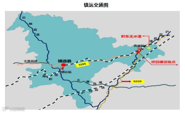 镇远县交通便利,形成了集公路、铁路、水路协同发展,以镇远古城区为枢纽,以公路为主体的二横二纵、连接城乡、四通八达、功能齐全、配套合理的交通运输网络体系。具体来说:公路:沪昆高速、天黄高速、320国道、306省道横贯东西,沿榕高速纵贯南北,项目点设在沪昆高速、320国道、306省道的交汇处,交通非常便利。产品可以通过306省道向西连接沿榕高速北上进入成渝经济圈,也可以通过沪昆高速向西进入黔中经济圈、向东进入长株潭城市圈、南下连接天黄高速进入北部湾经济圈与珠三角地区。铁路:湘黔铁路横贯镇远县境80公里,设有镇远、青溪等站点,连通镇远通向东部沿海地区的生命通道,缩短了到中南、华南、华东地区部分省市的距离。此外,项目点距离沪昆高铁三穗站20公里,距铜仁南站30公里。航空:距铜仁大兴机场100公里、凯里黄平机场120公里、贵阳龙洞堡机场250公里。