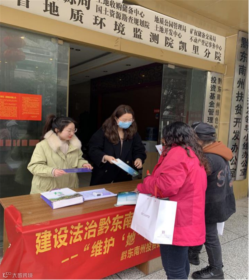 3月5日下午,妇女干部在局办公楼门口摆摊设点开展“建设法治黔东南·巾帼在行动”“三八维权宣传月”活动,广泛宣传《宪法》《民法典》婚姻家庭篇《妇女权益保障法》《反家庭暴力法》《未成年人保护法》《预防未成年人犯罪法》《贵州省反家庭暴力条例》《贵州省法治宣传教育条例》《贵州省未成年人家庭教育促进条例》等有关妇女儿童权益的法律法规和文明婚育知识,共发放宣传资料1000余份,接受现场咨询50余人次。