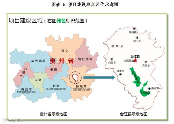 项目建设区域位于贵州省黔东南州台江县台江国家森林公园。规划面积为6702.91公顷,横跨台拱、南宫两个乡镇,分为红阳景区和南宫景区。