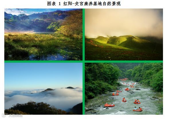 红阳-交宫森林康养基地森林植被茂密,森林覆盖率达85%,空气极其纯净,生态环境优美,堪称“苗疆净土”。这里空气含负氧离子高达6000至8000多个,是国际标准的8倍之多,是天然氧吧。区域内有红阳万亩草场、荣上大坡等自然景观。红阳万亩草场——红阳万亩草场是台江国家森林公园重要景区,草场面积约5万亩,东西长10余公里。草场主要为山地灌丛林草地,四周原始森林保存完好,整个草原延绵起伏、山峦碧绿、气势磅礴;草场最高海波1765m,是我国南方风力富集区,建有红阳风电场,形成了草场另一大独特景观。荣上大坡——位于红阳景区南部,峰顶海拔1614m,是基地内的最高山峰。登临荣上大坡区域,放眼眺望,顿觉心旷神怡,尽可抒怀,给人以“会当凌绝顶,一览众山小”的感觉,但见山峦碧绿、气势磅礴,万亩草场绵延起伏;村寨民居、梯田被群山环抱,呈现出一幅幅秀美恬静的田园风光。由于海拔较高、植被茂盛,基地内常年会出现云雾、雪景、雨凇雾凇、朝晖夕阳等绝美的自然景观,令人叹为观止。