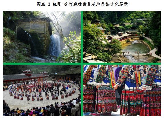 台江有“天下苗族第一县”的美誉,苗族人口占总人口的比重达到97%,苗族文化风情厚重,其独特的各种节庆、饮食烹调、传统服饰、苗族婚礼、岁时节令、游艺竞技、文化艺术等都得到完好的传承。红阳-交宫森林康养基地内苗族村寨众多,保存较为完好,主要的苗寨包括红阳景区的红阳苗寨、大红寨、小红寨、养你寨、展左寨和南宫景区的交密寨、南牛寨和五降寨等。丰富的苗寨资源和多彩的苗族传统文化将有助于项目文化内涵的提升,增强项目森林康养的独特性和文化性。