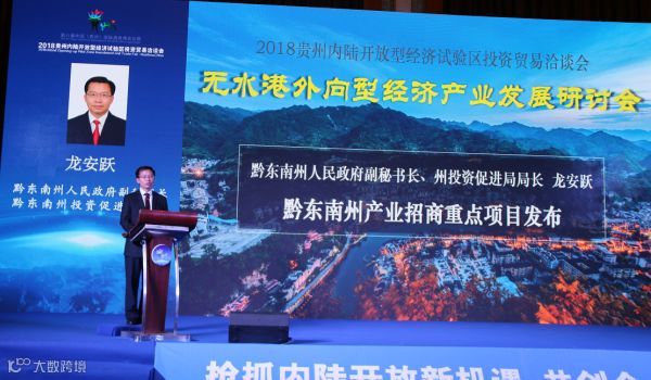 2018年9月8日,在贵阳举办的2018“贵洽会”无水港外向型经济产业发展研讨会上,黔东南州对外发布251个重点产业招商引资项目,招商总金额776.30亿元,重点涵盖文化旅游业、加工制造业、现代山地特色高效农业、大健康医药和养生养老、大数据电子信息等主导产业,其中,文化旅游业项目89个,招商金额413.53亿元;加工制造业项目40个,招商金额125.99亿元;现代山地特色高效农业项目62个,招商金额115.44亿元;大健康医药和养生养老项目32个,招商金额66.28亿元;大数据电子信息项目14个,招商金额25.26亿元;其他类项目14个,招商金额29.80亿元。为广大参会企业增进了解、增强投资信心打下坚实基础。