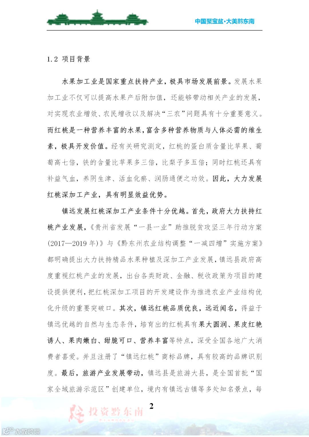 镇远县“镇远红桃”种植及深加工一体化建设项目