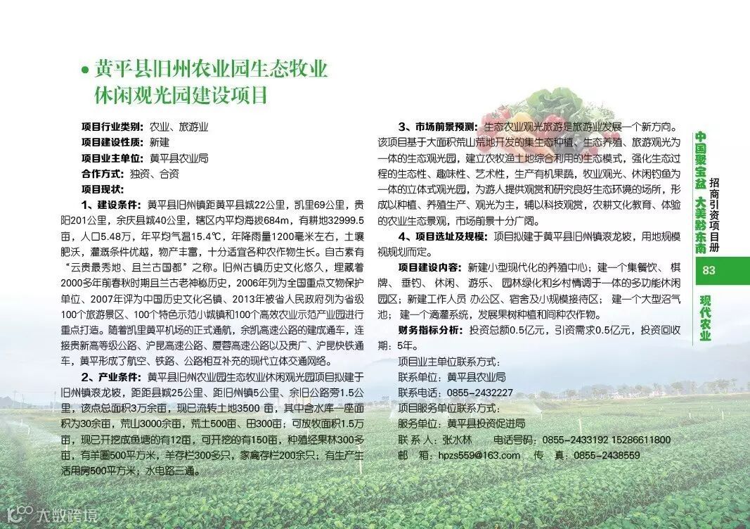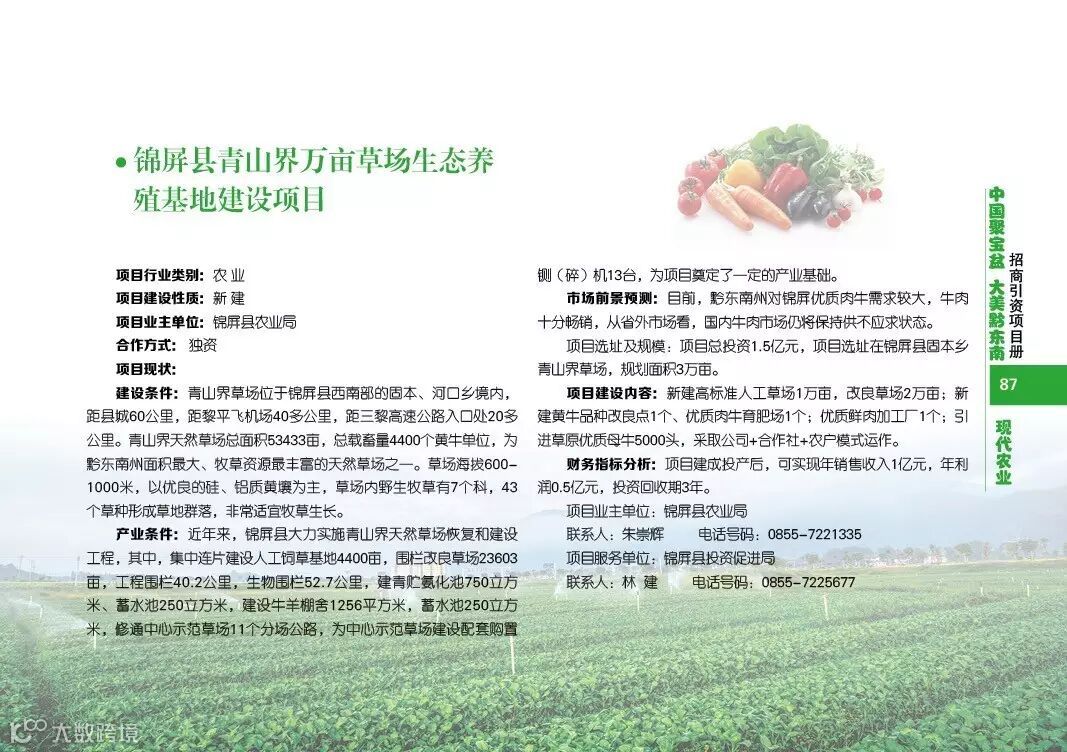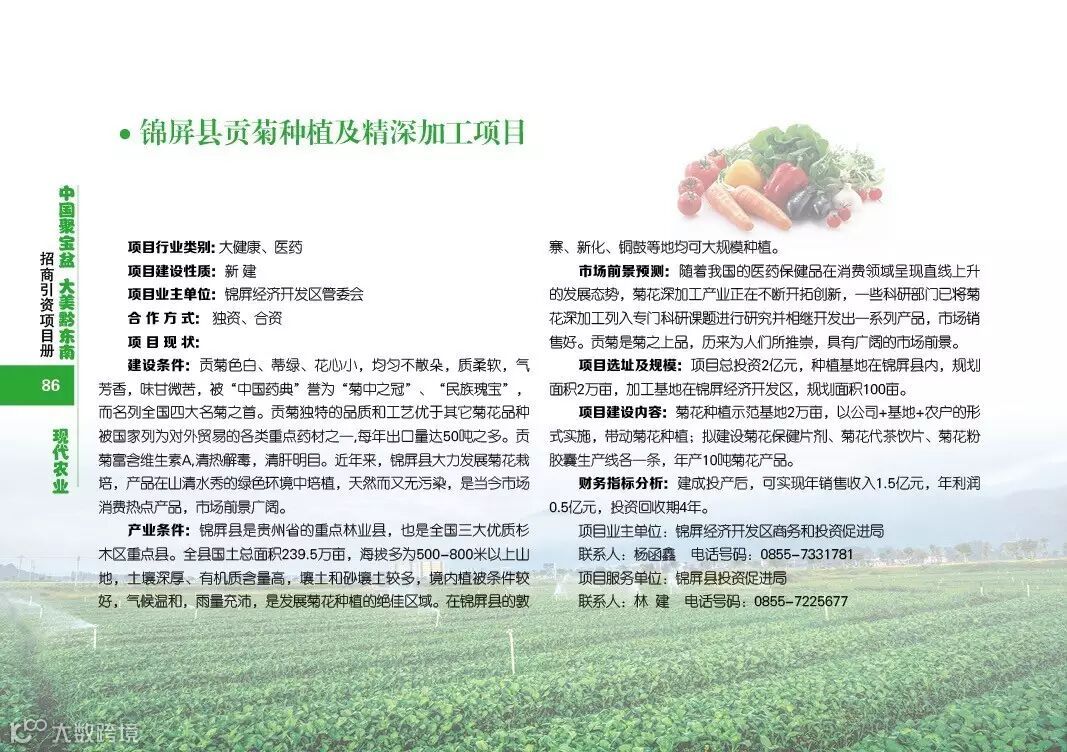黔东南招商引资项目现代农业类(剑河 锦屏 雷山)