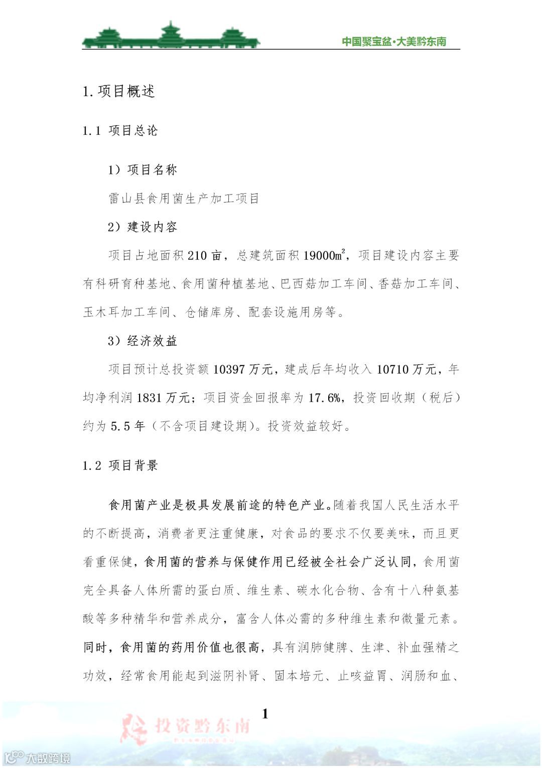 雷山县食用菌生产加工项目