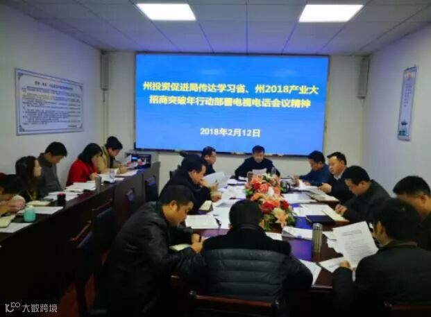 2018年2月12日,州投资促进局召开全局干部职工会议,及时传达学习省、州2018产业大招商突破年行动部署电视电话会议精神。会议由州人民政府副秘书长、州投资促进局局长龙安跃主持。