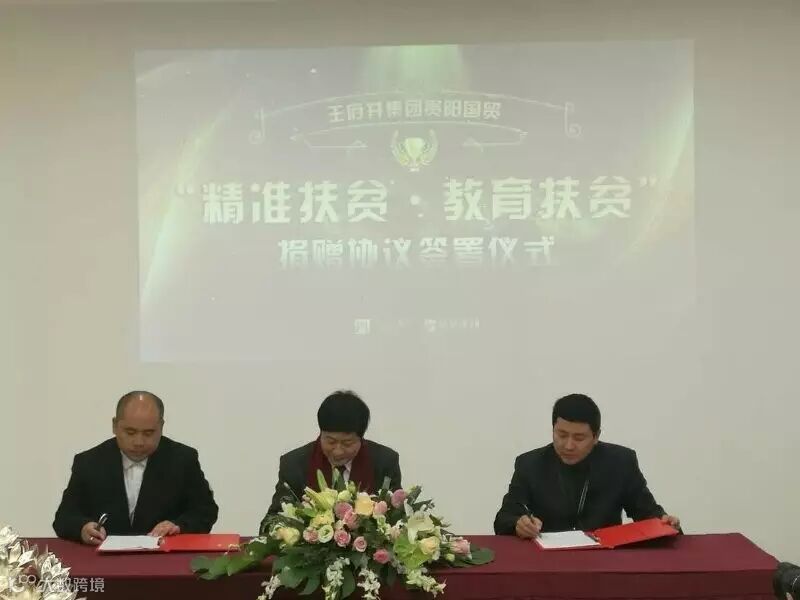 3月25日,王府井国贸集团与贵州凯里经济开发区达成的“教育扶贫”捐赠协议签署仪式在王府井国贸集团凯里分公司会议室隆重举行。王府井国贸集团总裁吴鹏飞,贵州凯里经济开发区管委会副主任卿尚东分别代表双方在协议上签字,四联村主任文秀成作为见证人在协议上签字。