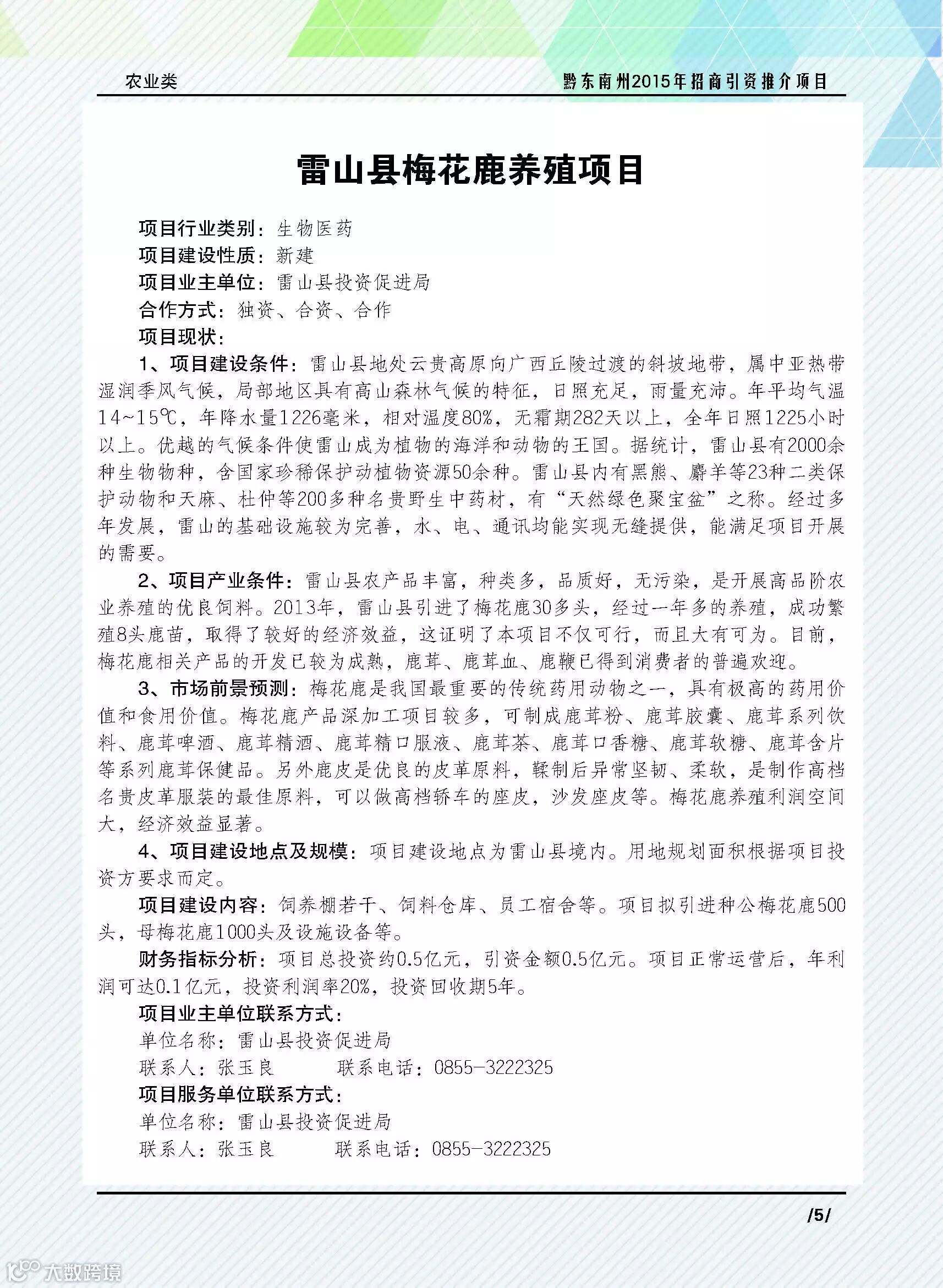 雷山县梅花鹿养殖项目