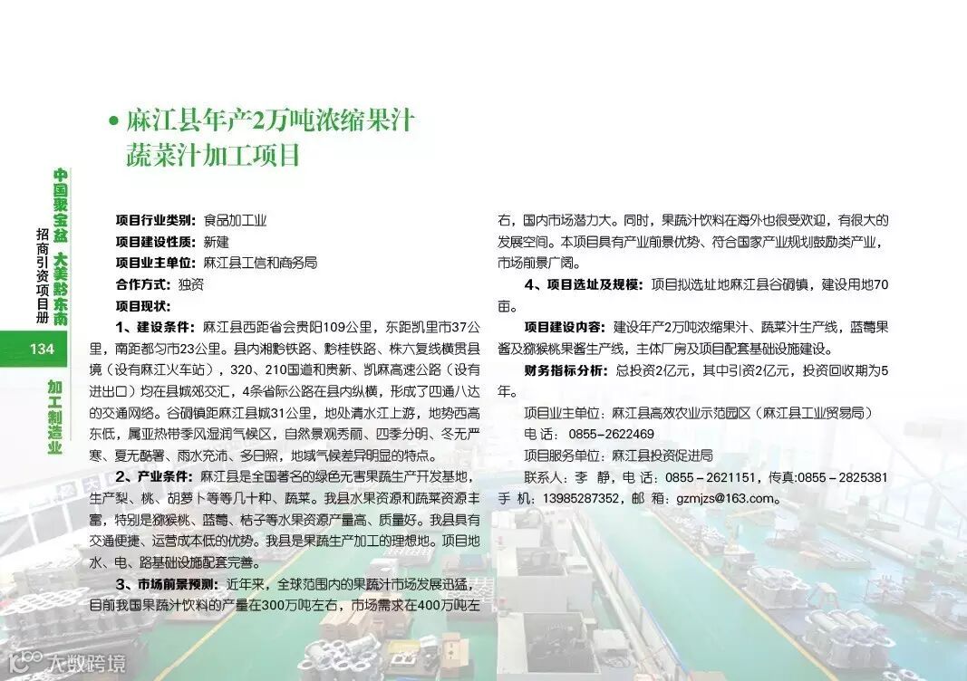 黔东南招商引资项目加工制造业类(麻江 榕江)