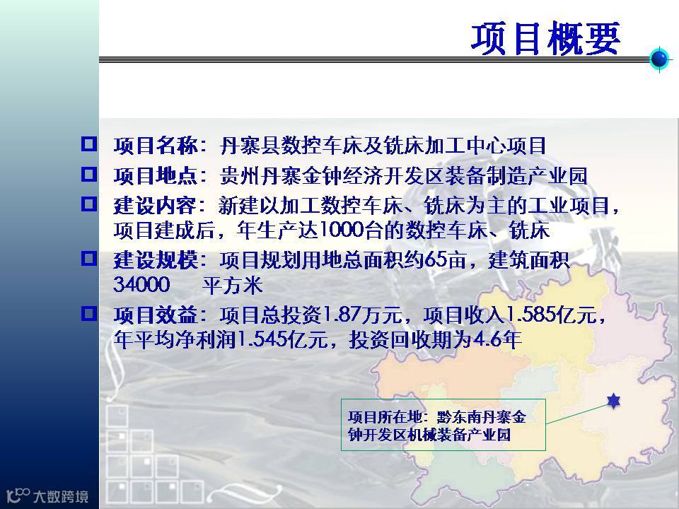 丹寨县数控车床及铣床加工中心项目商业计划书