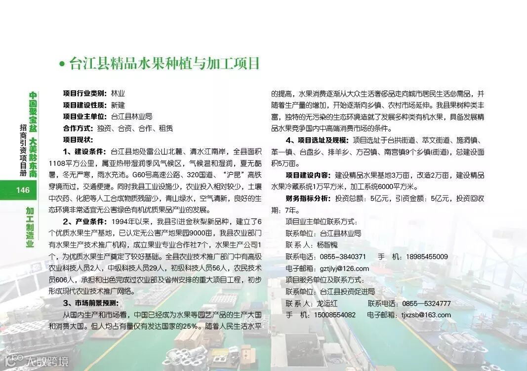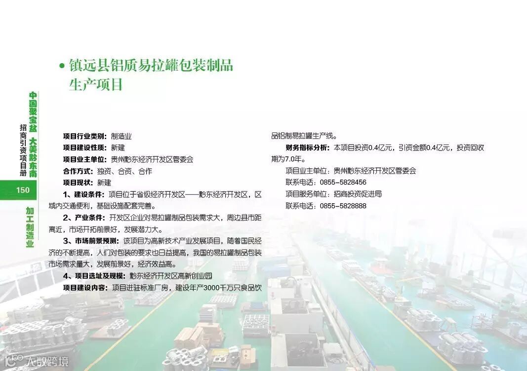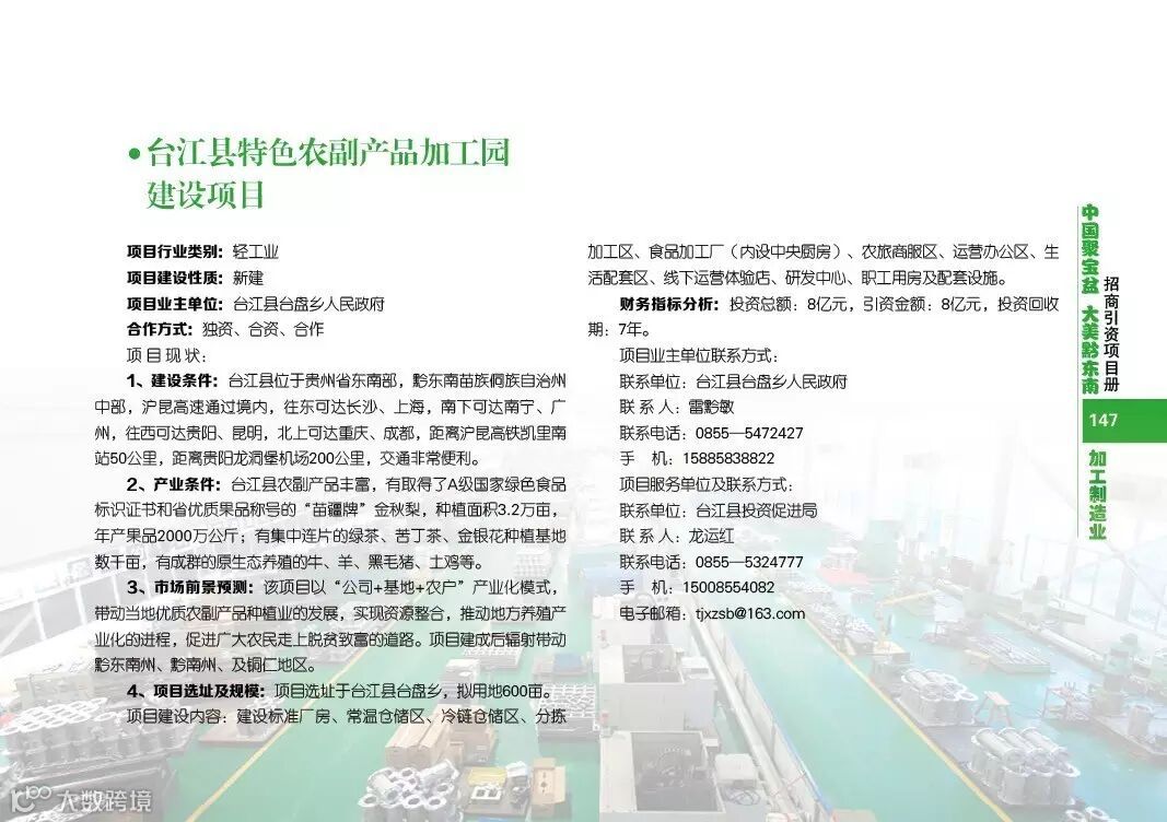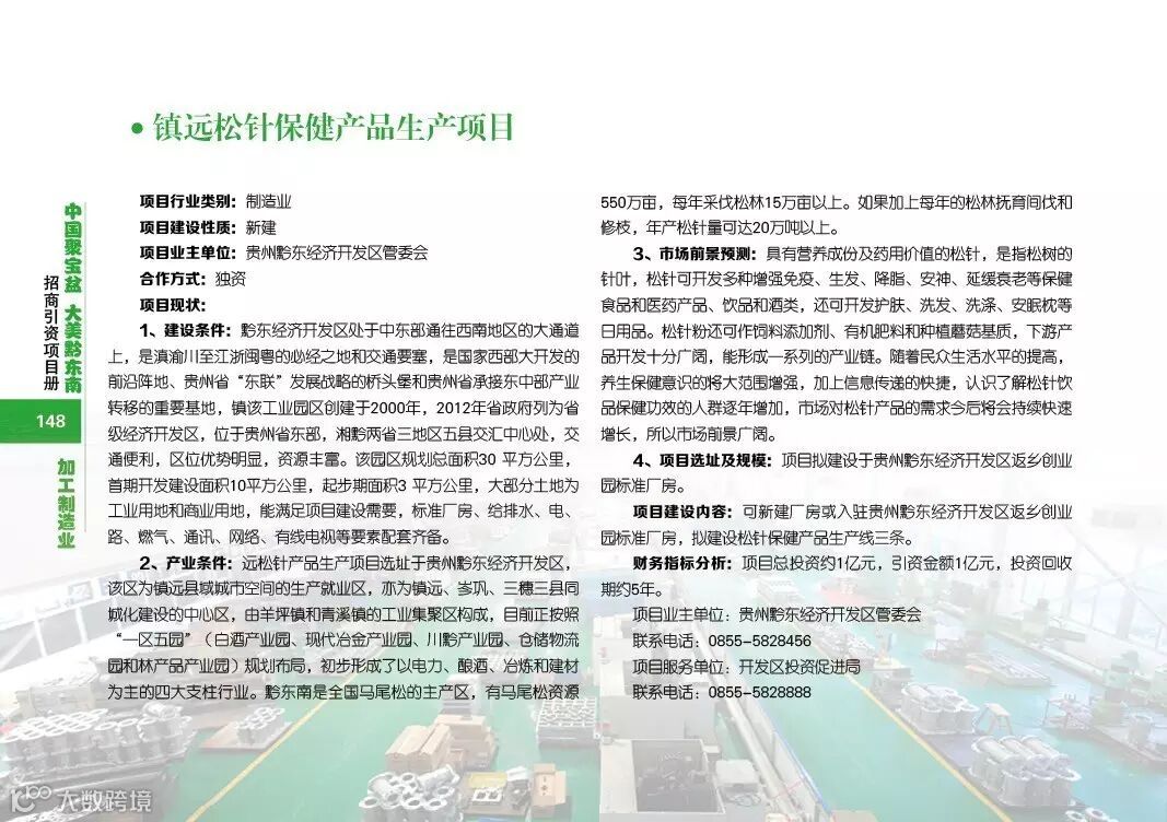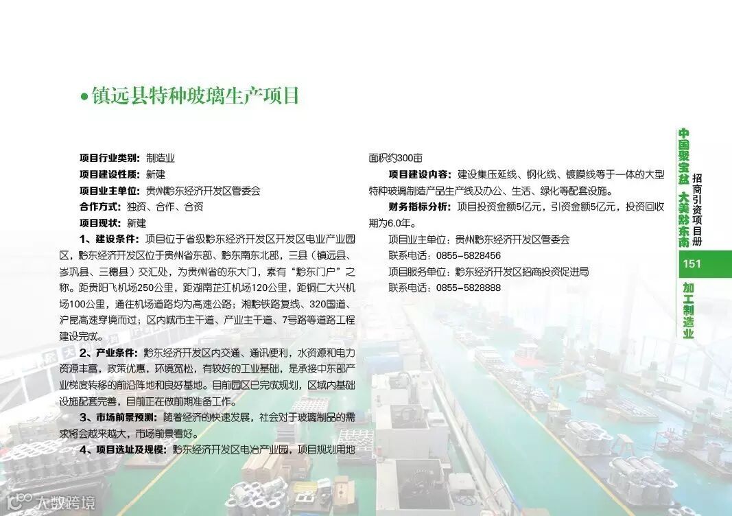 黔东南招商引资项目加工制造业类(台江 镇远)