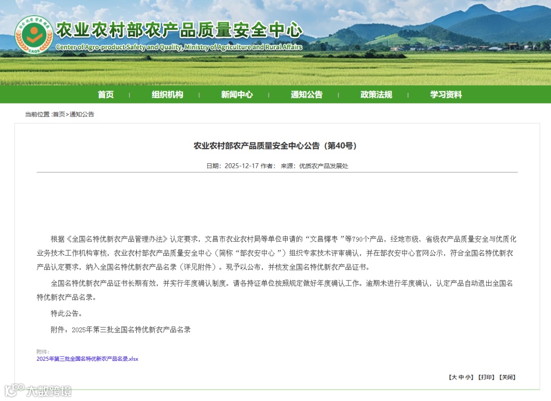 据《全国名特优新农产品管理办法》,全国名特优新农产品是指在特定区域(原则上以县域为单元)内生产、具有显著地域特征和独特营养品质特色、具备一定生产规模和稳定的供应量、市场认知度和美誉度高,并经农业农村部农产品质量安全中心认定和核发证书的农产品及初加工产品。