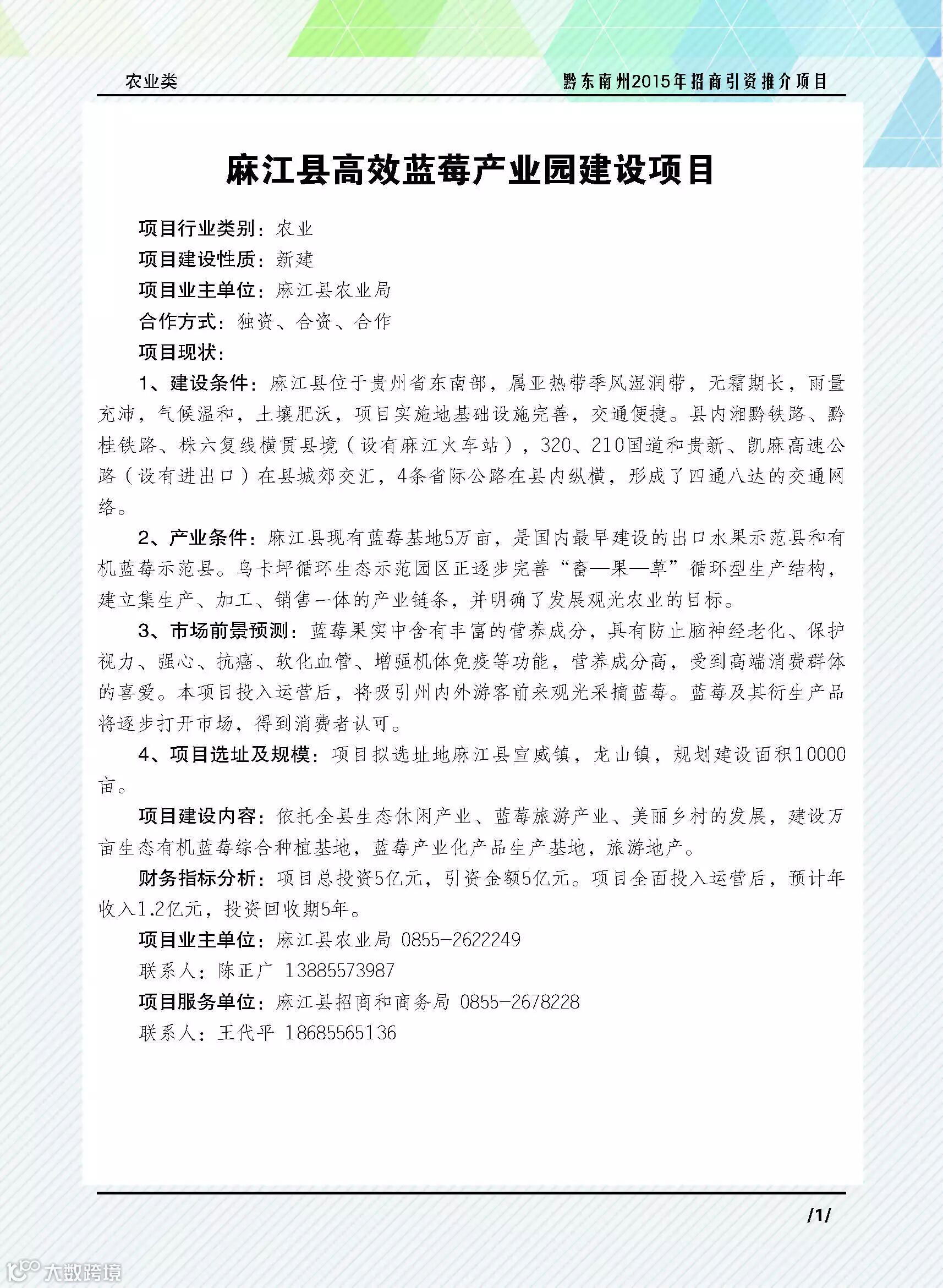 麻江县高效蓝莓产业园建设项目