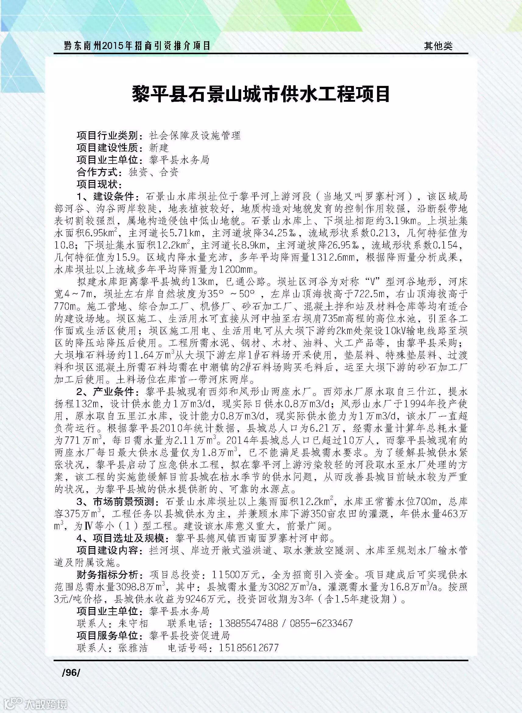 黎平县石景山城市供水工程项目