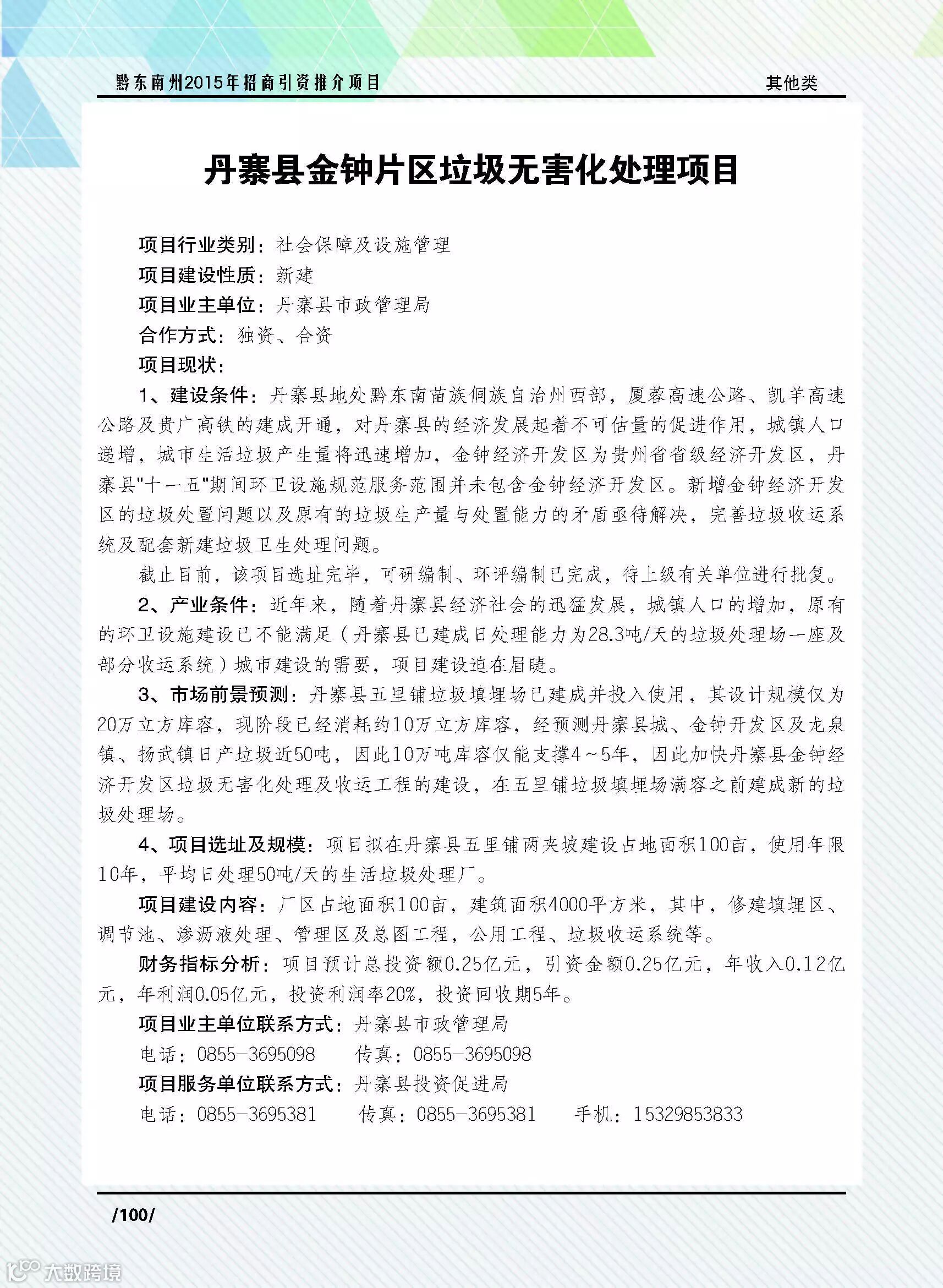 丹寨县金钟片区垃圾无害化处理项目