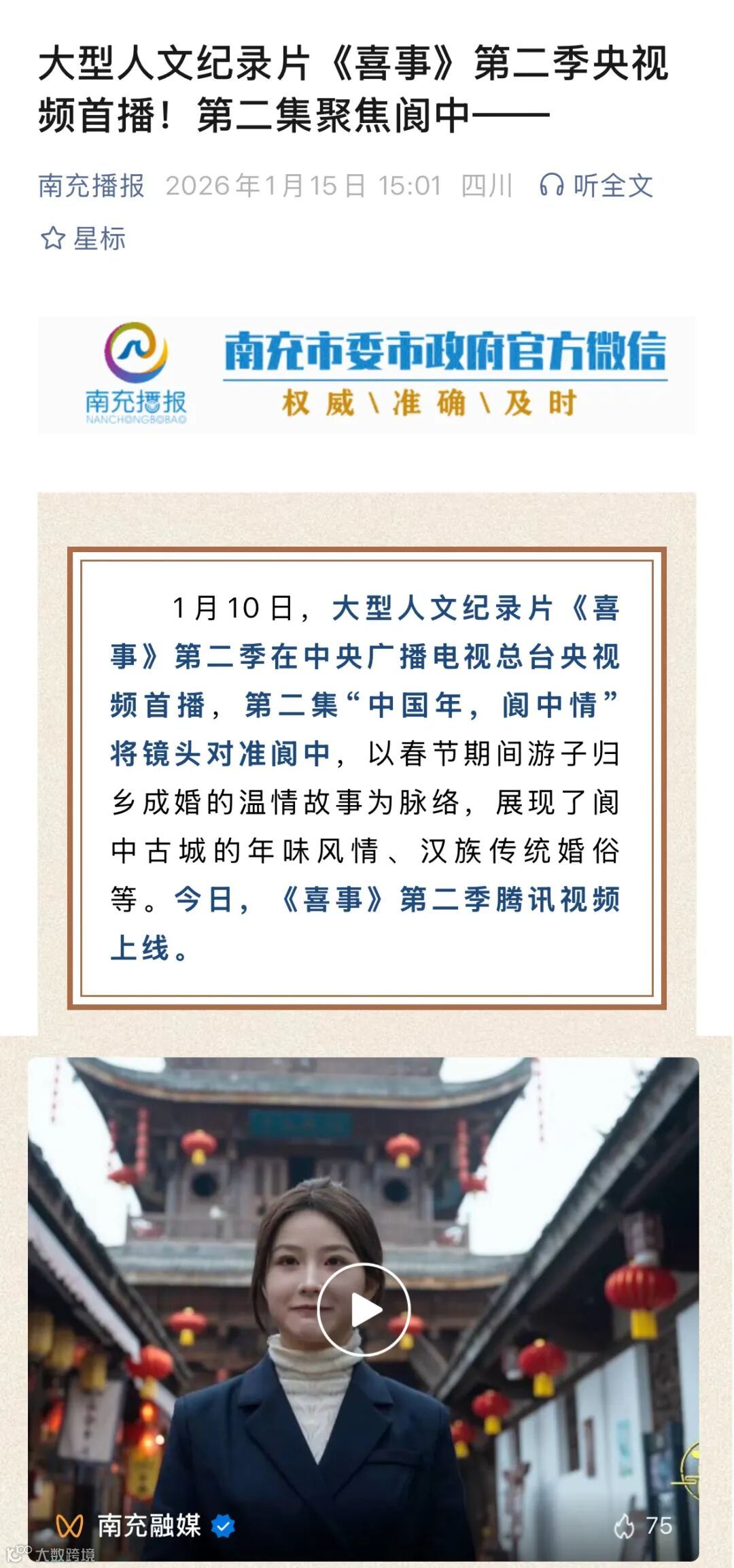此次跻身全国百强,既是对南充城市国际网络形象建设工作的肯定,更是新的起点。下一步,南充将持续深化文化内涵挖掘与传播形式创新,推动城市形象传播从“广覆盖”向“深渗透”转变,让千年绸都的独特魅力在全球舞台上绽放更耀眼的光彩,为建设巴蜀特色文化旅游发展示范区注入更强动力。