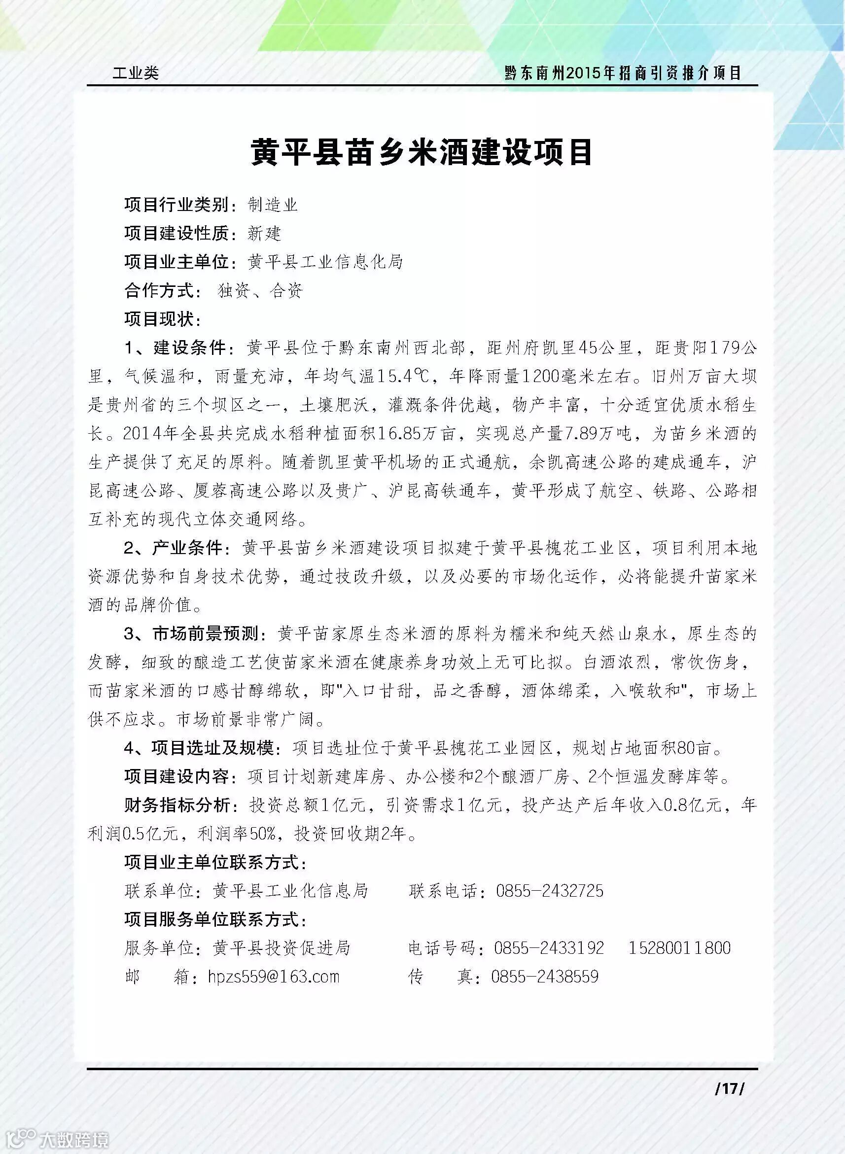 黄平县苗乡米酒建设项目