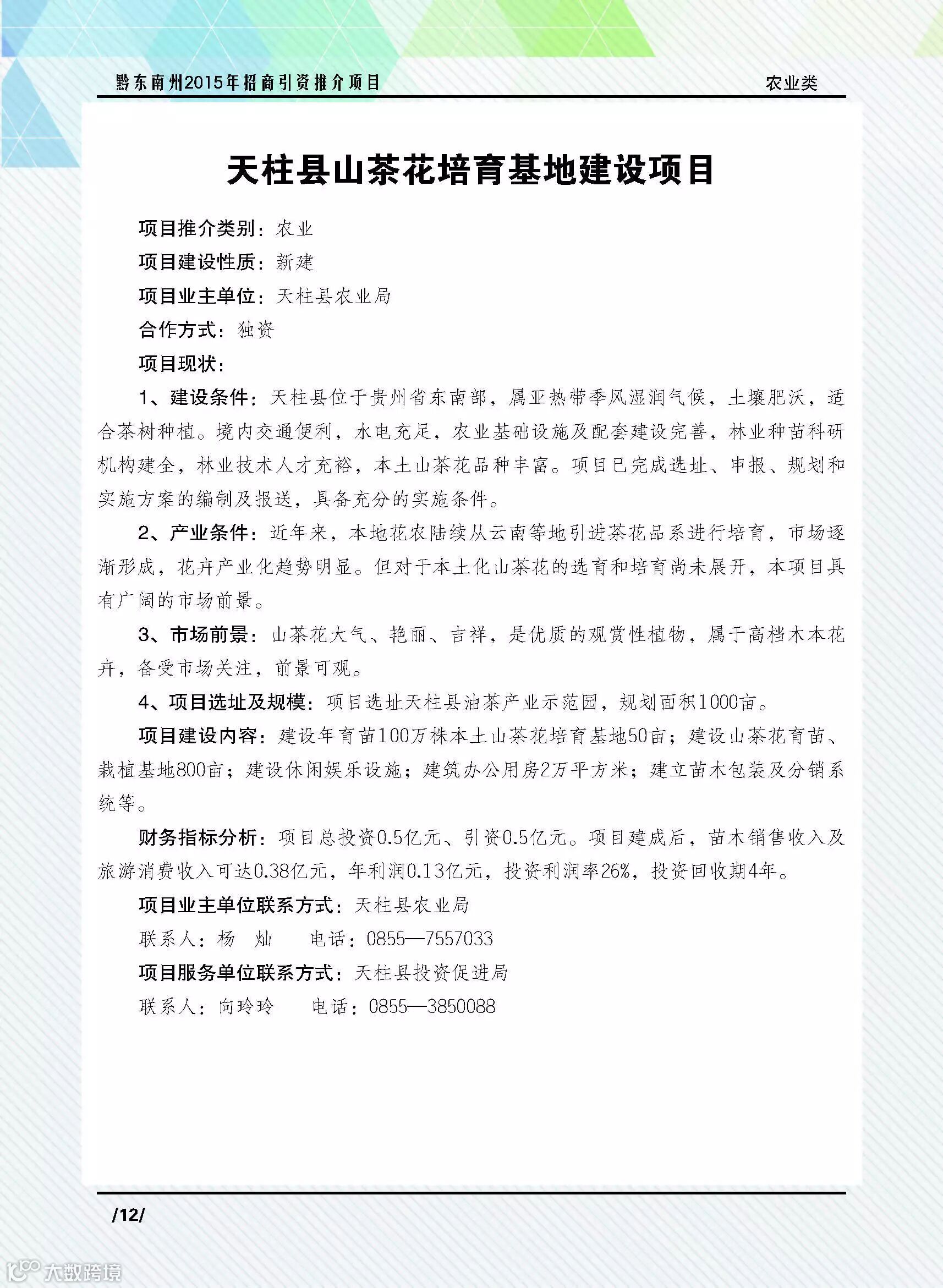 天柱县山茶花培育基地建设项目