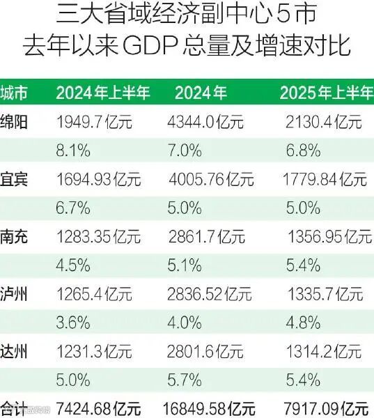 在四川经济版图中,成都稳居“龙头”。第二梯队,则是正加快建设省域经济副中心的绵阳、宜宾—泸州组团、南充—达州组团,它们构成全省经济发展的“腰部”支撑。