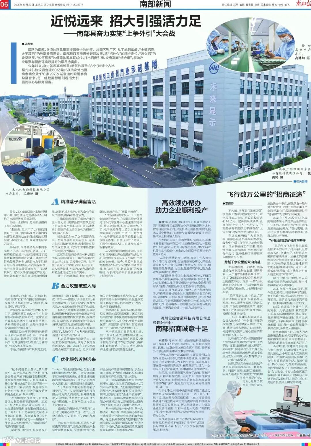 2025年,南部聚合全县力量、政策、资源向工业倾斜,以“链长制”为抓手创新股权招商、投资招商模式,全流程跟踪护航项目落地,推动招商工作实现从“数量增长”到“质量跃升”的关键跨越,绘就了链聚商兴的实干画卷。